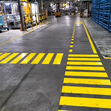 Indoor line striping for factories and warehouses will help you comply with safety standards.